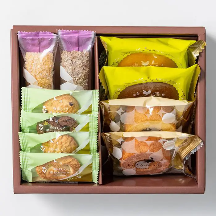やさしい味わいの焼き菓子をフラワーリースのデザインボックスで贈る。