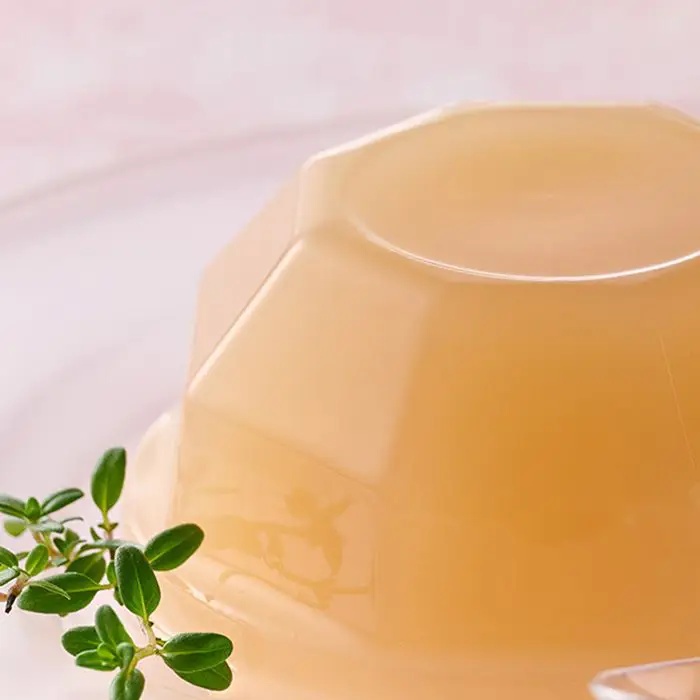 山梨県産白桃の果汁とピューレをゼリーに閉じ込めました。まるで生桃のような食感と味わいを追求した、フルーツパーラーの白桃ゼリーです。