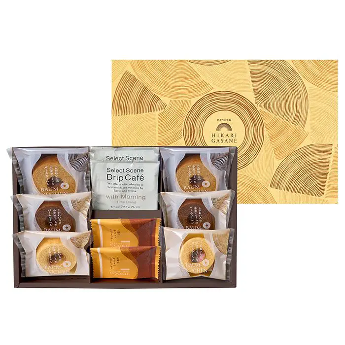 ふんわりとした食感にしっとり優しい甘さのプティバームは、ミルク・ココア・黒糖の味わいをご用意。大人からお子様まで幅広い年齢層に喜んでいただけます。また、サクサククッキーにメープルクリームとキャラメルクリームを挟んだ7層仕立てのサンドクッキー。1枚の厚みに食べ応えとクリームの心地よい甘さをご堪能いただけます。京都の老舗珈琲店である三喜屋珈琲のレギュラーコーヒーとお召し上がりいただく事で、お菓子とのマリアージュをお楽しみください。ひかりがさね(HIKARI GASANE)日本の地でつくられた、作り手のこだわりや、丁寧さ、食べる人への思いやりなどを込めたお菓子たち。『ひかりがさね』は、そんな作り手が思いを込めて層を重ねたバームクーヘンを中心に、七層のキャラメルサンドクッキーなど、いくえにも縁や思いを重ねてお付き合いしていくことを願って、ギフトをお届け致します。