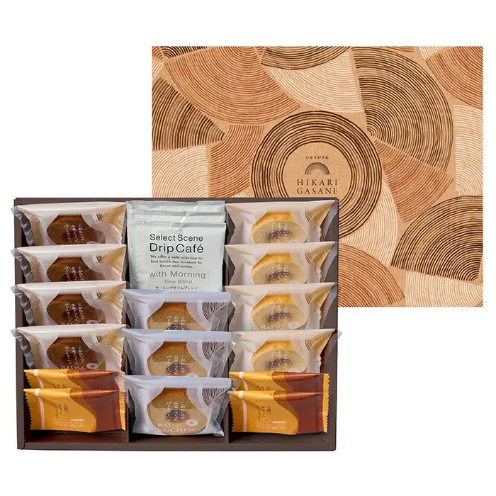 ふんわりとした食感にしっとり優しい甘さのプティバームは、ミルク・ココア・黒糖の味わいをご用意。大人からお子様まで幅広い年齢層に喜んでいただけます。また、サクサククッキーにメープルクリームとキャラメルクリームを挟んだ7層仕立てのサンドクッキー。1枚の厚みに食べ応えとクリームの心地よい甘さをご堪能いただけます。京都の老舗珈琲店である三喜屋珈琲のレギュラーコーヒーとお召し上がりいただく事で、お菓子とのマリアージュをお楽しみください。ひかりがさね(HIKARI GASANE)日本の地でつくられた、作り手のこだわりや、丁寧さ、食べる人への思いやりなどを込めたお菓子たち。『ひかりがさね』は、そんな作り手が思いを込めて層を重ねたバームクーヘンを中心に、七層のキャラメルサンドクッキーなど、いくえにも縁や思いを重ねてお付き合いしていくことを願って、ギフトをお届け致します。