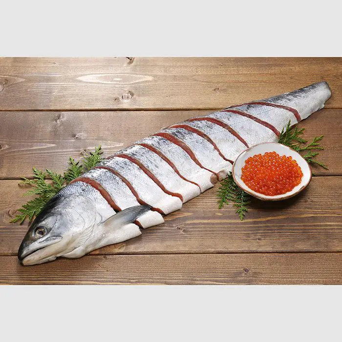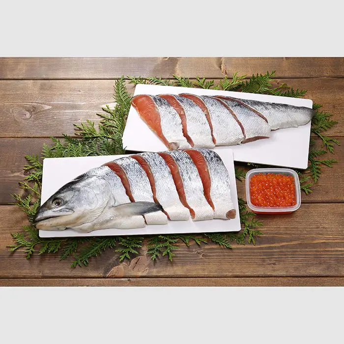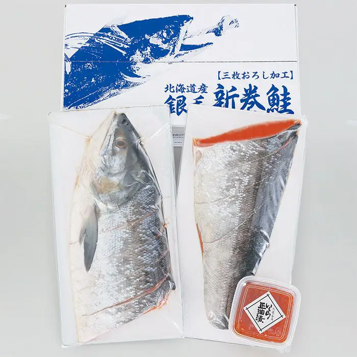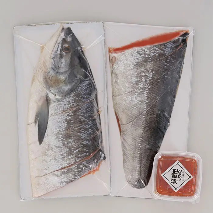 甘塩に仕上げた新巻鮭と、旬に獲れたいくらの醤油漬。
