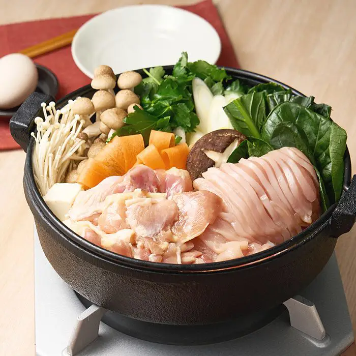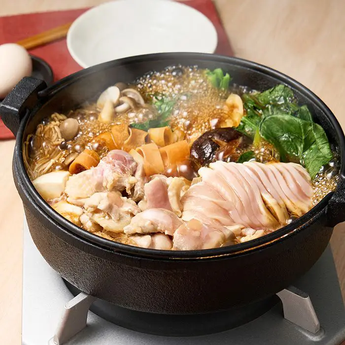 四国・徳島で育てられた地鶏「阿波尾鶏」を贅沢に楽しめる、すき焼きセット。旨みと食感を存分に味わえるもも肉の切り身とむね肉のスライス、阿波尾鶏のチキンエキスを配合した特製の割り下が、深みのある味わいを演出します。お好みの野菜と一緒にお楽しみください。