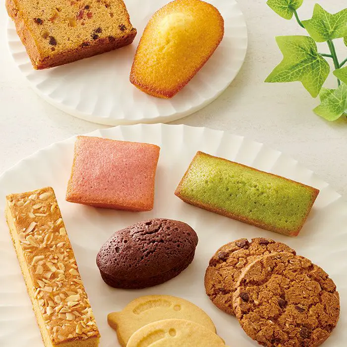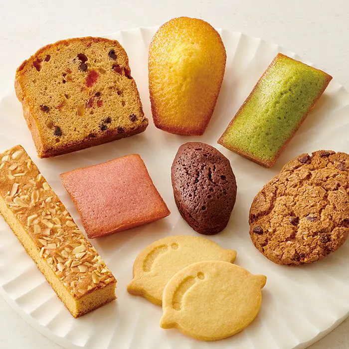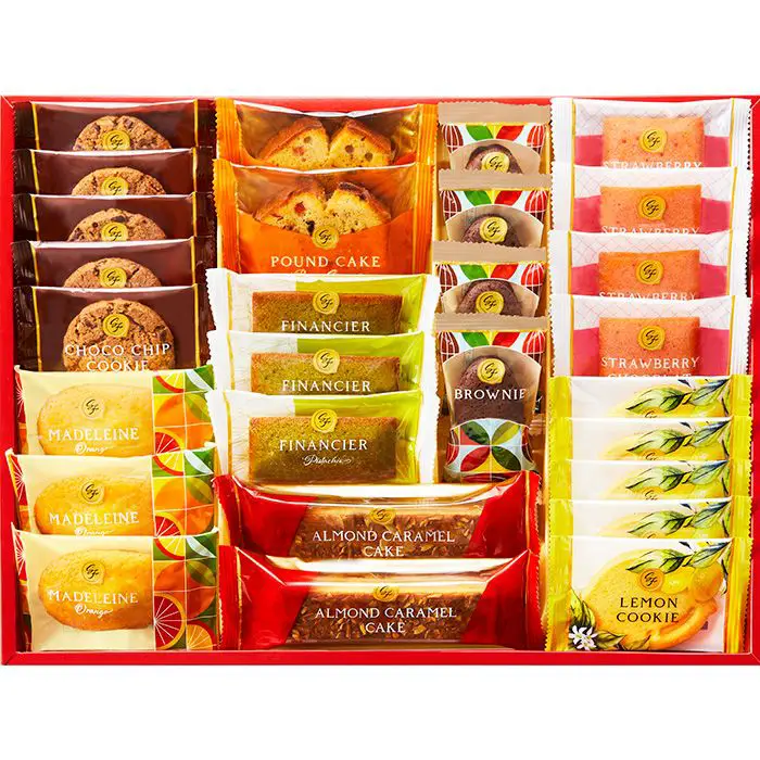 商品内容 オレンジマドレーヌ×3個、ストロベリーショコラケーキ×4個、ピスタチオフィナンシェ×3個、ブラウニー×4個、ブラウンシュガーパウンドケーキ×2個、アーモンドキャラメルケーキ×2個、チョコチップクッキー×5個、レモンクッキー×5個