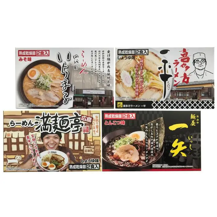 商品内容 札幌「いちまる」味噌味2食・喜多方「一平」醤油味2食・ 広島「満麺亭」醤油味2食・博多中洲「一矢」とんこつ味2食 計8食セット