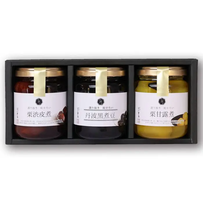 商品内容 丹波黒煮豆165g、栗渋皮煮170g、栗甘露煮170g