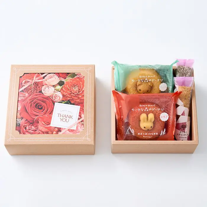 フラワーボックス仕立てのデザインボックスでスイーツを贈る