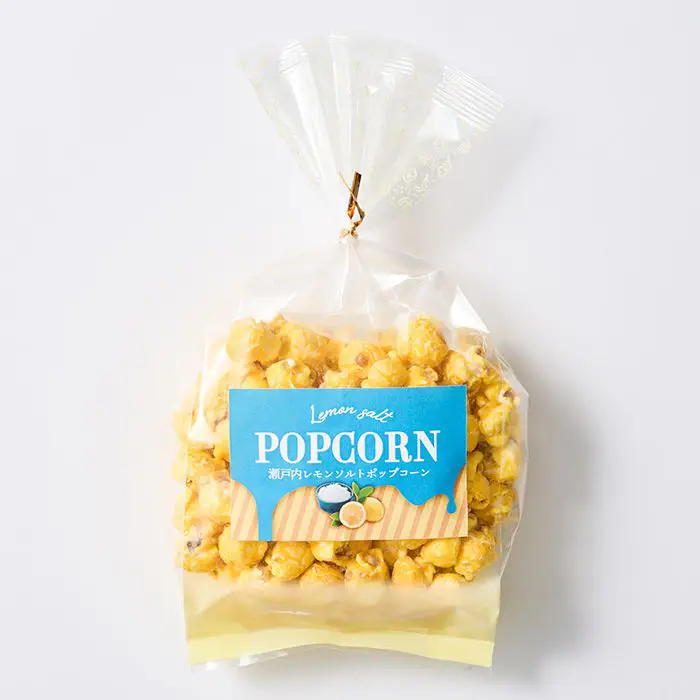 広島産レモン皮パウダーを使用した、酸味を少し効かせた程よい甘さのポップコーンです。塩味が甘さを引き立てます。