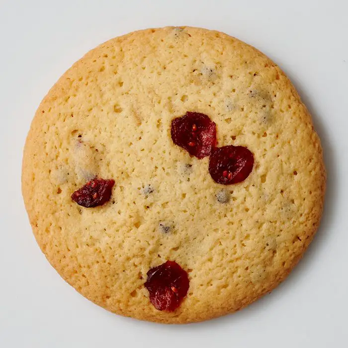直径約8.5cm、しっとりほろほろ食感の大判クッキー。プレーン生地にベリーとミルクチョコが甘酸っぱい1枚。いつもより心をちょっとだけ明るく華やかにしたい日にピッタリです。