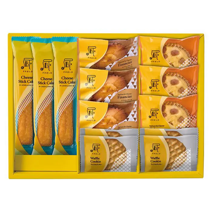 商品内容 アプリコットチーズフィナンシェ×3個、アプリコットチーズケーキ×3個、チーズスティックケーキ×3個、ワッフルクッキー×4個