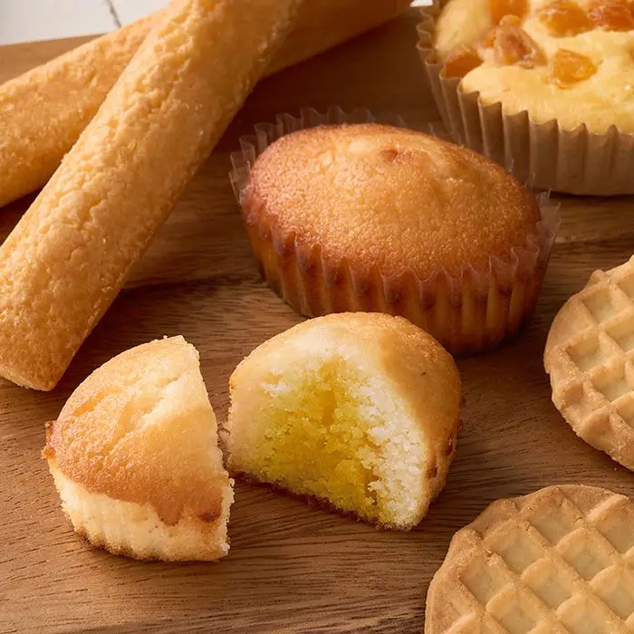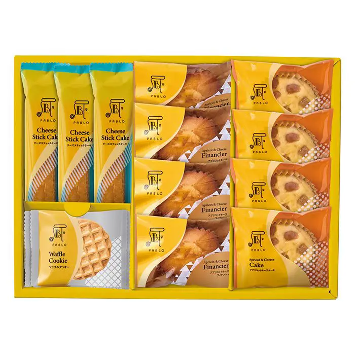 商品内容 アプリコットチーズフィナンシェ×4個、アプリコットチーズケーキ×4個、チーズスティックケーキ×3個、ワッフルクッキー×4個