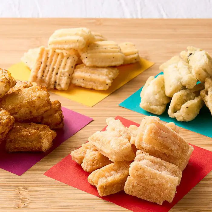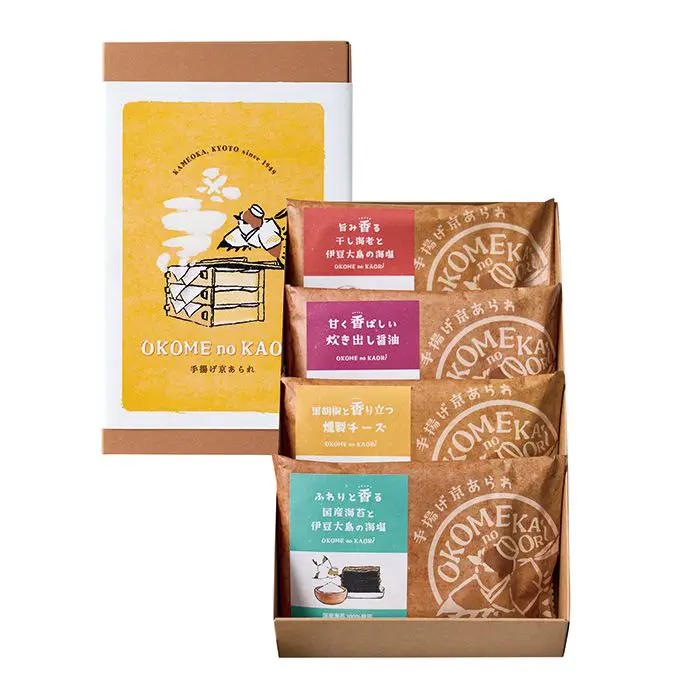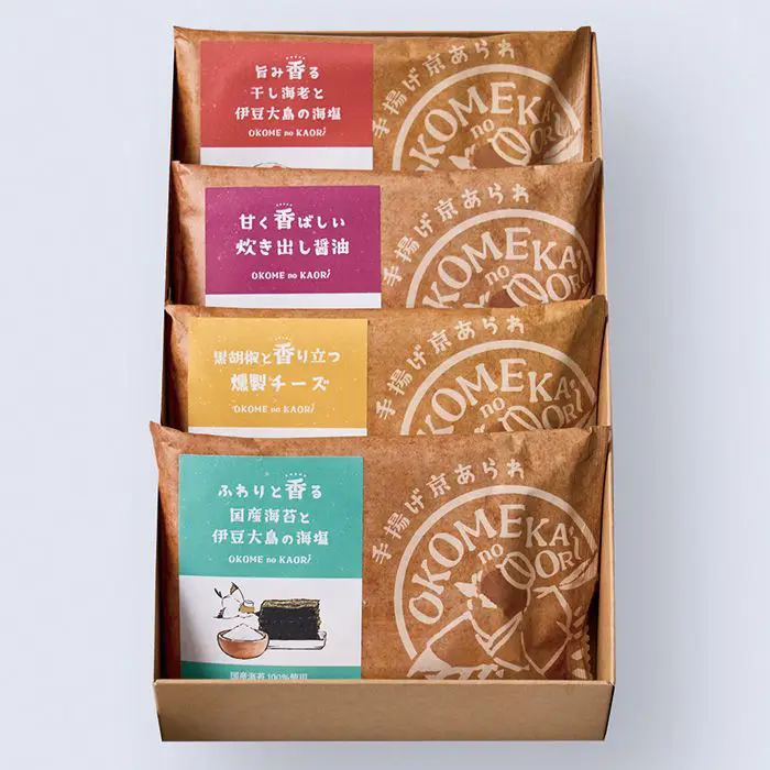 京都の職人が1つ1つ手揚げする、お米の香りがするあられ。