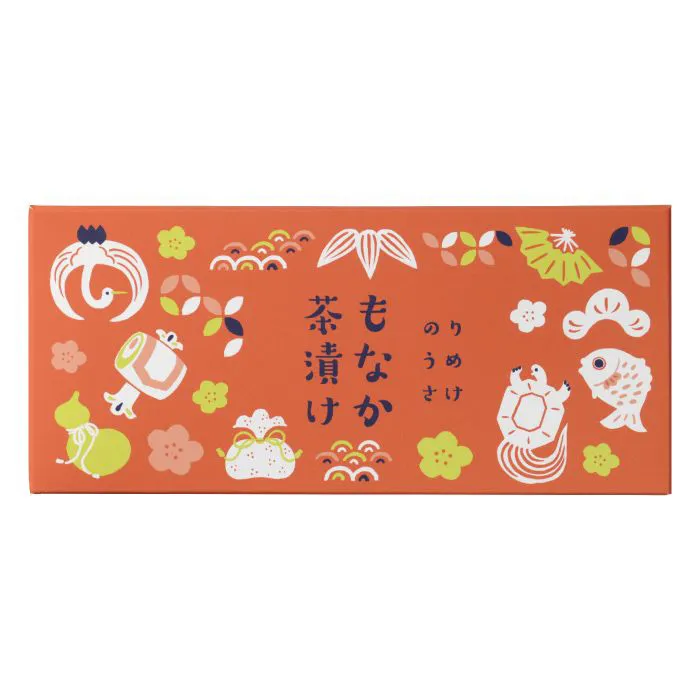 縁起物モチーフをちりばめた可愛らしいパッケージに、もなか茶漬け(のり・うめ・さけ)の3種を詰め合わせました。