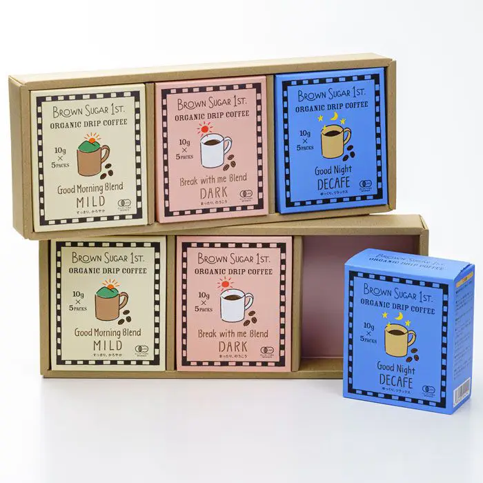 オーガニックのコーヒー豆を贅沢に使用し、朝向けにすっきりとした口当たりのマイルド、お昼向けに深いコクのあるダーク、夜のお休み前にはデカフェ、と3種類の味をご用意しました。