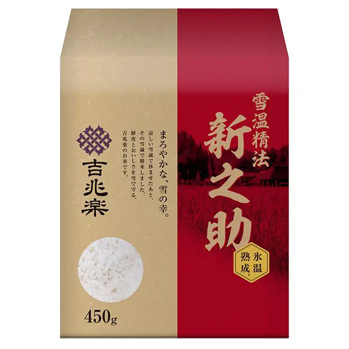 700トンの貯雪が眠る雪蔵倉庫で米を保管する「雪蔵仕込み」と、冷気を活用して精米する「雪温精米」をかけ合わせた「雪温精法」。-2℃の氷温熟成で加工することで、米の甘みと旨みを引き出しています。新潟県が誇るこしひかりと新之助をセットでお届け。味の違いをお楽しみください。