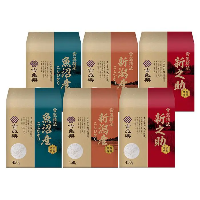 商品内容 氷温熟成(新潟産こしひかり・魚沼産こしひかり・新潟産新之助)各450g×2袋