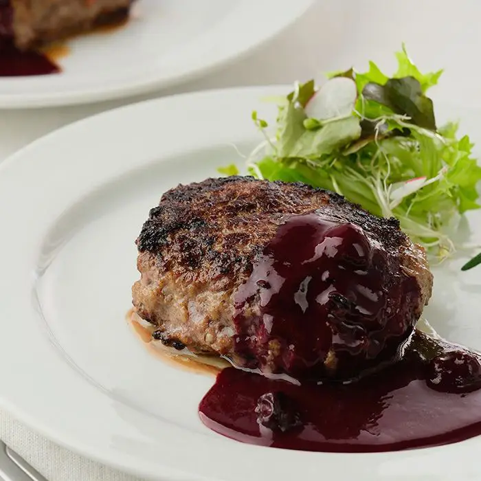 爽やかなブルーベリーソースが 上質のハンバーグにベストマッチ