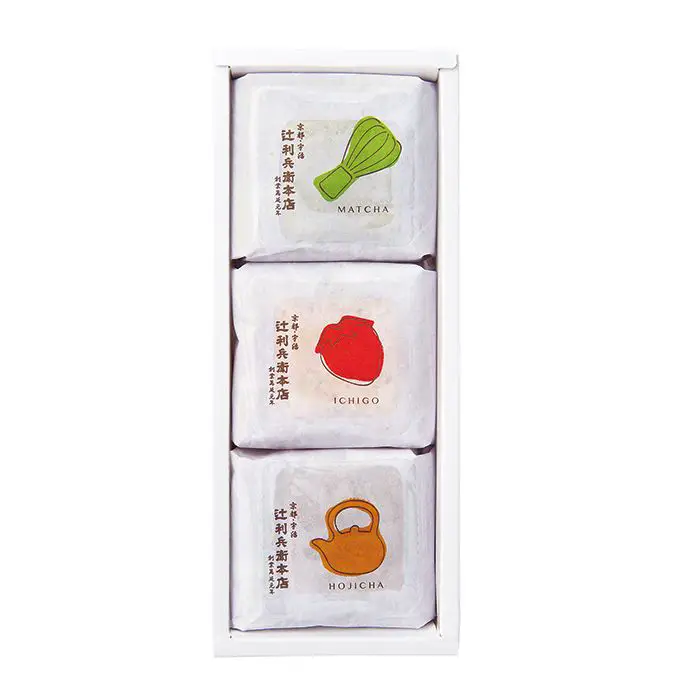 宇治茶の香りをとじこめたクリームを、3種類のしっとり生地で包みました。ほうじ茶の生地には玄米茶クリームを包んで、香ばしい和のハーモニーを。クリームと生地との多彩な組合せをお楽しみください。辻利兵衛本店のお菓子に込めた遊び心をひとくち・・・。目の前にあるだけで、非日常を感じられる心地よさ。品のある美しさと、抹茶の深緑が印象的な京都の和スイーツには、時間の流れを感じながら、じっくりと味わいたくなる魅力があります。選りすぐりの京都スイーツと共に、ちょっと贅沢なひと時をお過ごしください。150余年守り続ける「宇治」の伝統と革新辻利兵衛本店の始まりは1860年(萬延元年)。幕府の庇護を失い衰えつつあった宇治の茶園を初代・辻利兵衛が私財を投じて買い取り、伝統の味わいを守らんと起業しました。それから150余年にわたってこだわり続けた抹茶の味を生かしながら、時代ごとに新しいおいしさへ。日本はもちろん。世界に誇る「宇治」をお召し上がりください。