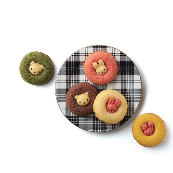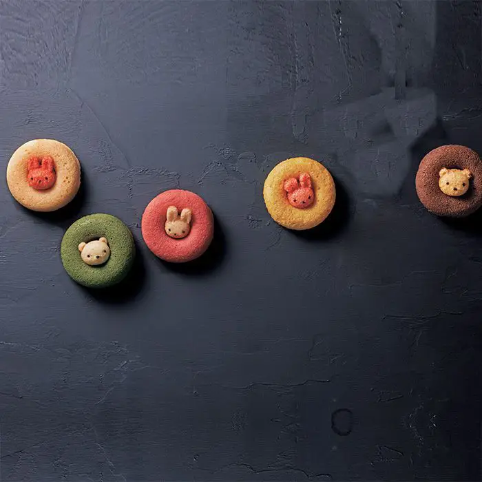 真ん中から動物たちがひょっこり顔を出した焼きドーナツ。その愛嬌のある見た目は、食べるのがもったいなくなるほど。かわいいボックスがギフトにもぴったりです。ドーナツのおうちでウサギさんとクマさんがまったり!?色とりどりな輪っかのまん中には、ウサギとクマの小さな焼ドーナツ。見た目のかわいさはもちろん、しっとり食感は女子をとりこにすること間違いなし!かわいい箱はプレゼントにもぴったりです。