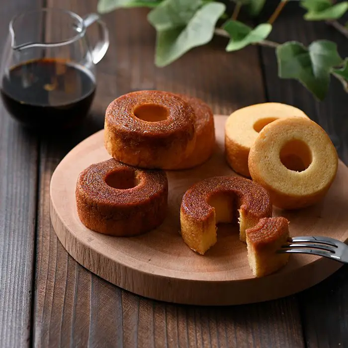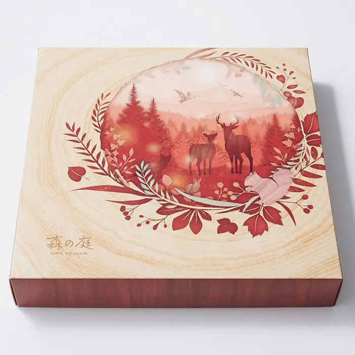 非日常の森の庭で素朴なお菓子を味わう『森の庭』シリーズ。しっとりバームクーヘンにカラメルソースをまとわせ、砂糖をかけてさらに焼き上げた「焦がしキャラメルがしみ込んだバーム」と、「しっとりバームクーヘン」の2種を詰め合わせました。ひと手間かけた味わいをお楽しみください。